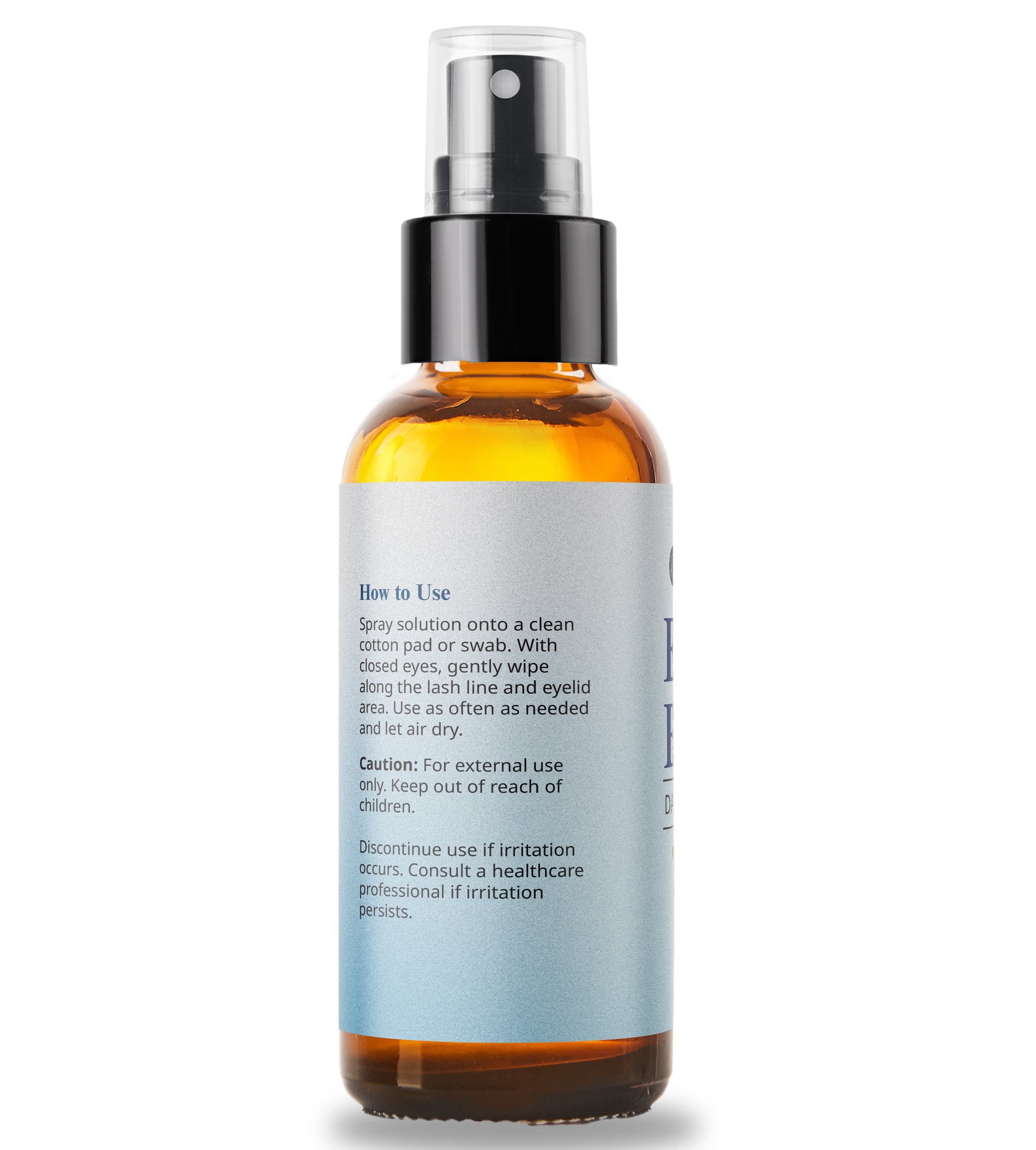 - EASY-TO-USE, EVERYDAY CLEANSER: Our cleanser is made with natural, non-irritating ingredients and is fragrance free, safe for everyday use. Packaged in a convenient travel-size spray bottle, simply spray the solution onto a clean cotton pad or swab, and gently wipe on closed eyes, following the lash line and eyelid area.