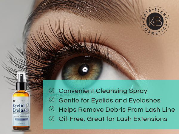 - GENTLE & NON-DRYING FORMULA: Designed for use around the delicate eye area, Kate Blanc Cosmetics' Eyelid & Eyelash Cleanser is non-irritating and helps remove oil, residue, and impurities from the eyelids and eyelashes as part of your daily skincare routine. It's great for keeping your natural lashes and lash extensions feeling clean and refreshed.
